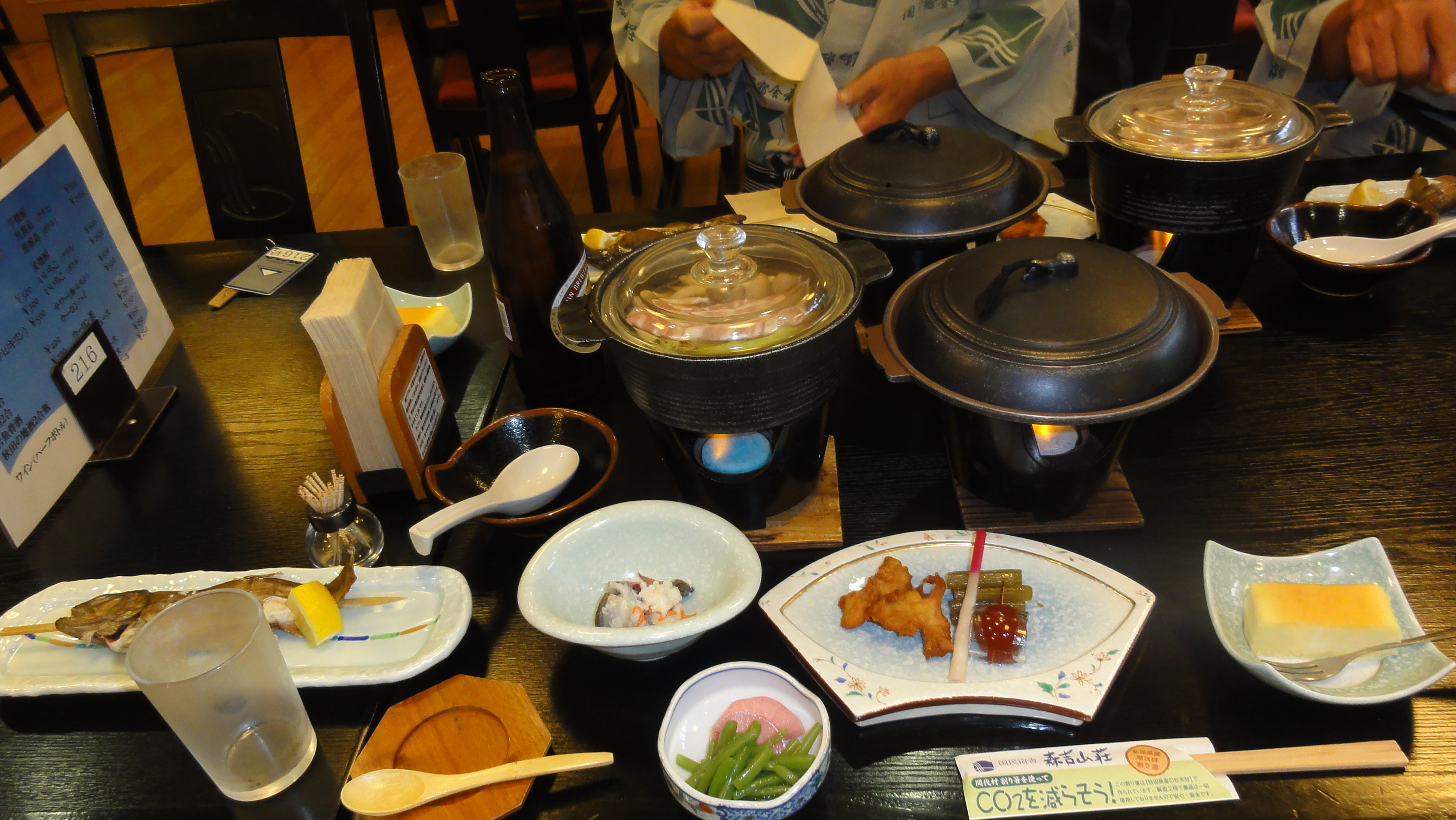 宿に帰って温泉に入って、食事前のビールを飲んで宴会です。