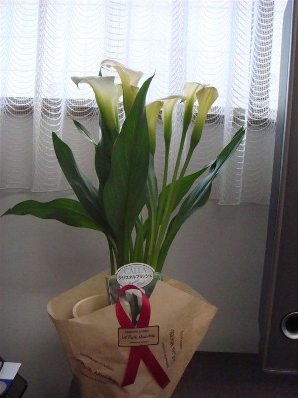 妻にはカラーの鉢植えを頂いた。とっても気に入っている花なのでとても喜んでいる。大事に育てて毎年花を咲かせたいといっている。