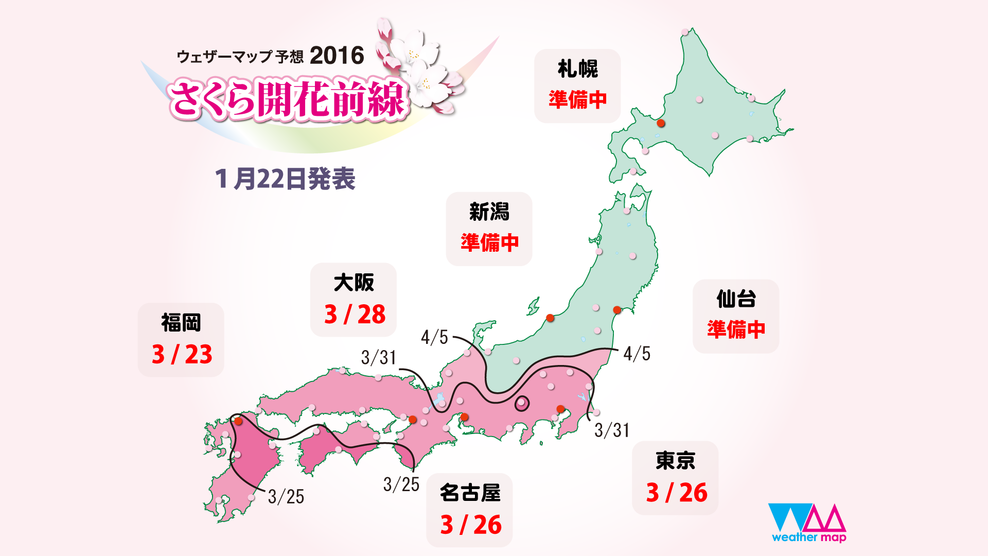 寒に入って暖冬から一転して寒い日が続いていますがウェザーマップが第一回「さくら開花予想」を発表しました。