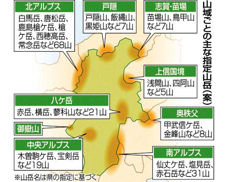長野県の登山届提出義務化の山を発表