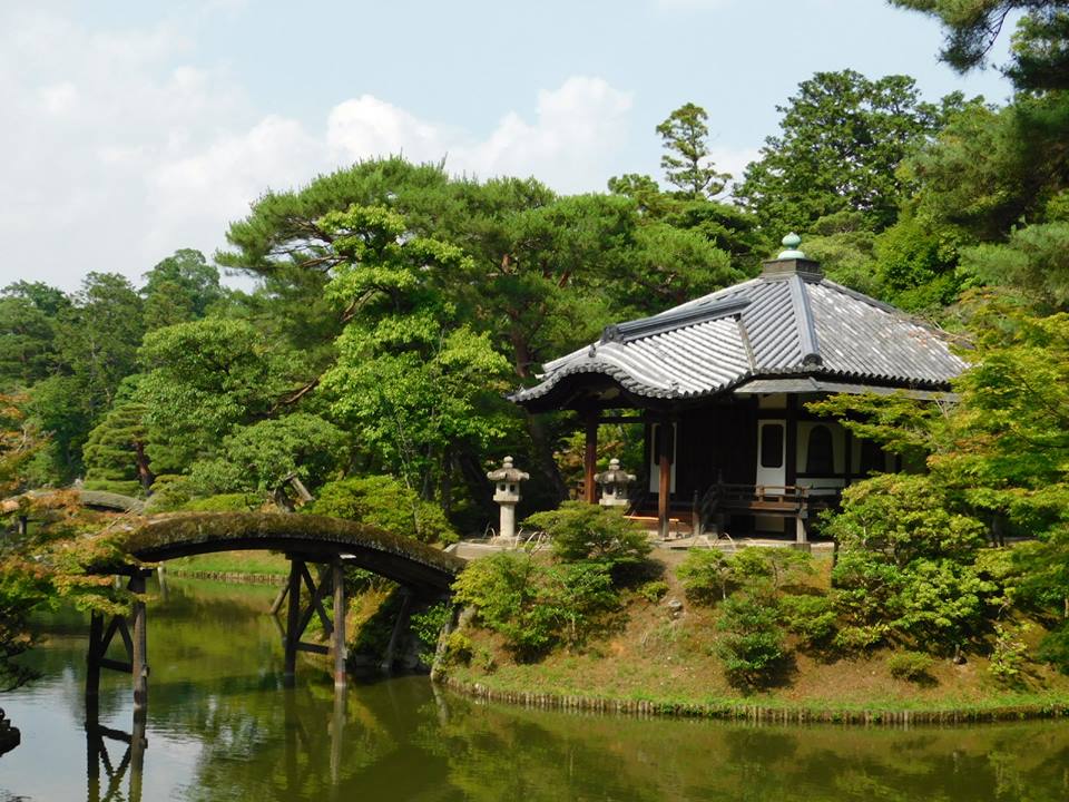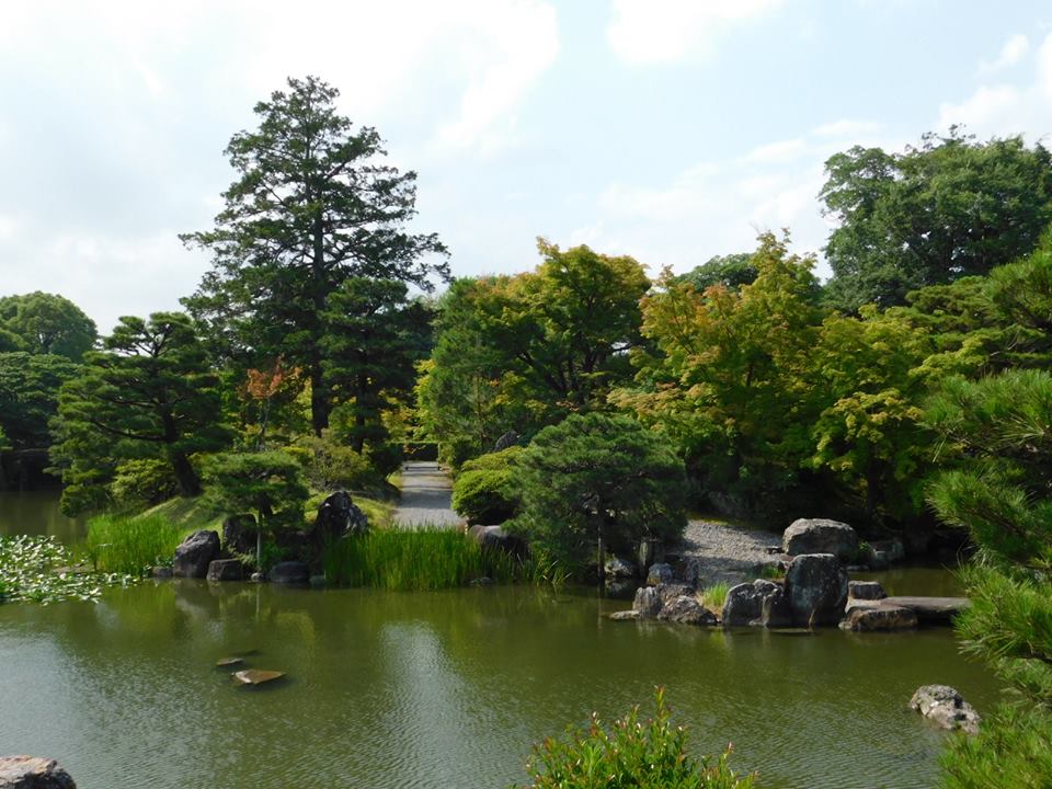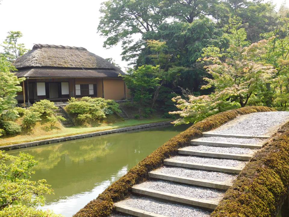 京都駅に戻り昼食後は予約しておいた桂離宮へとバスで向かいました。桂川沿いの塀は笹でできており匠が生えている竹を編みこんだものだそうです。かれないからすごいですね。かつては桂川の氾濫に水が入らないようにとの対策だったそうです。桂離宮は7世紀の初めから中頃までに、八条宮初代智仁親王と二代智忠親王によって造られたもので、日本庭園として最高の名園といわれるだけあってすばらしいお庭でした。秋にも訪れたいですね。