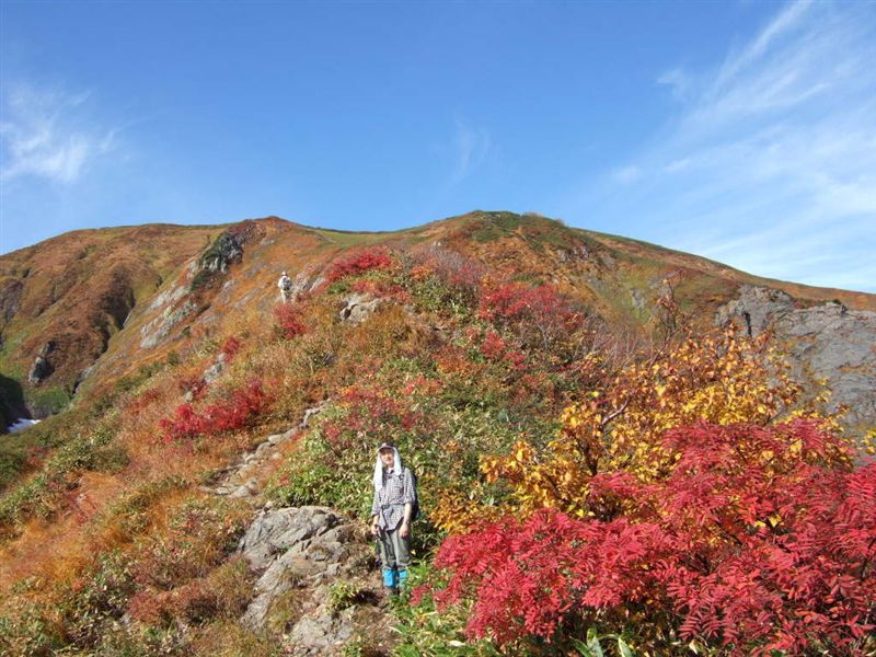 778864a9.JPG写真は10/12に登った越後駒の枝折峠から山頂までの登山ルートの肯定である。(クリックで写真拡大します)標高差は900m位であり楽な登りではあるが距離が8km弱と長くとても時間がかかる。我々も5:30に峠を出発したが山頂には9:30くらいになってしまった。紅葉が見ごろであったので団体ツアー登山客も多かったがベテランぞろいなのだろう。あまり渋滞せず結構な速さで登山していた。やはりこの山はツアー登山の募集にも健脚の人だけとかで募集したのであろう。