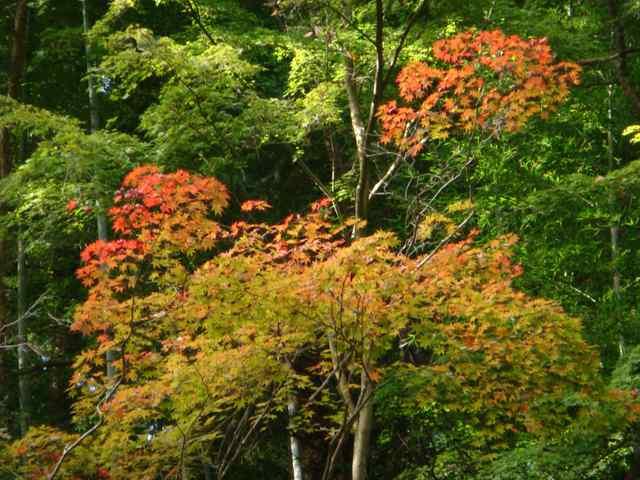 里山と山の中腹あたりでは紅葉の度合いが違いますね。