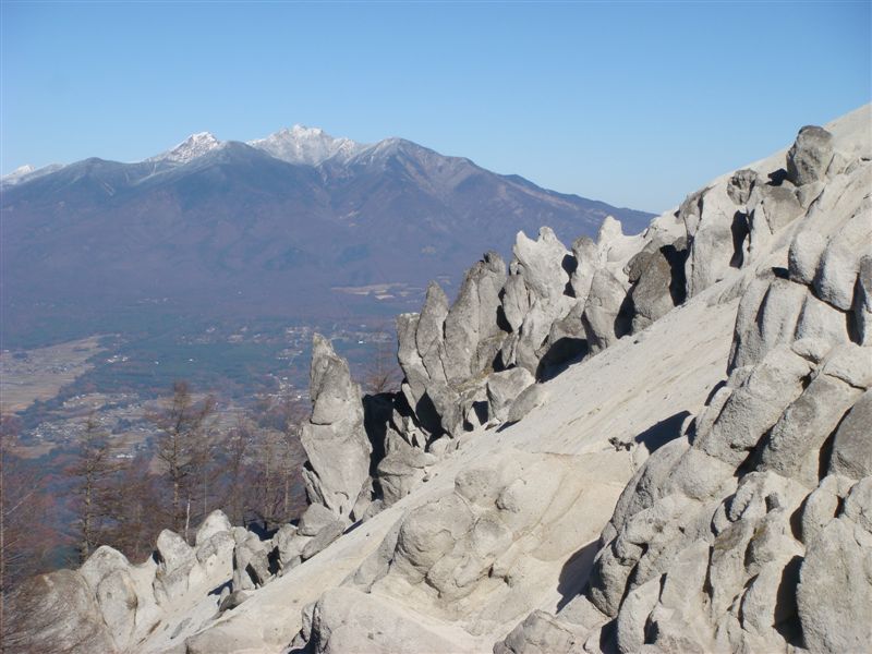 山頂から携帯でもUpしたが八ヶ岳が日向山山頂の花崗岩の岩とのコントラストがすばらしい。この山の山頂には真っ白な花崗岩の砂原と岩が広がっている。後日コースと写真をUpしていきます。