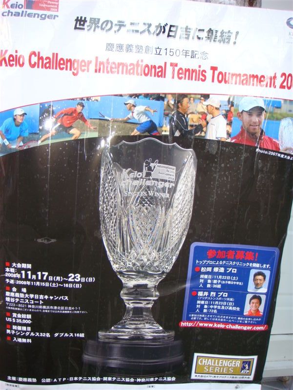 昨日慶応大学日吉校舎の蝮谷て慶応チャレンジカップ国際テニス大会があり観戦にいってきた。ダブルスとシングルスの決勝戦で世界ランキングATPポイントもつく。