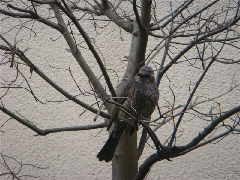 庭にある千両の実がだんだんなくなっていると思ったら小鳥がやってきていた。真っ赤な実をつまんで食べていたのだ。実をつまんでみたらやわらかくなっていて食べごろのようだ。ヒヨドリだろう。止まっている木ははなみずきで何年か前に巣を造り卵を産みヒナをかえしたことがある。そのとき生まれた鳥ではないだろうが・・・