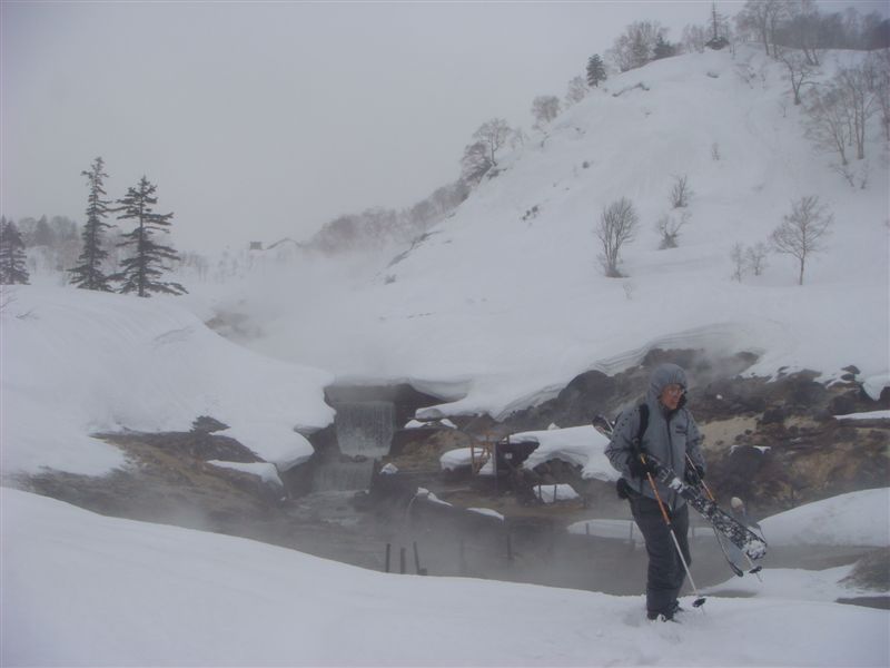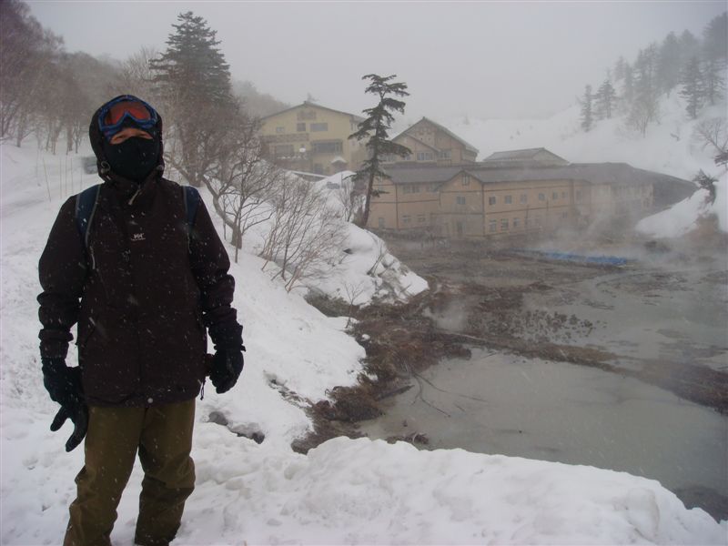 ほんとに風雪の激しい中、裸になって入ってしまいました。とても満足そうな顔ではありますが・・・・その着替えはXXXもちじんだんではないだろうか。私はカメラマンに徹して入りませんでした。ちょっと危ない写真は割愛しますね。とても野趣あふれる露天風呂でした。入浴料金¥500.-とありましたが・・・・