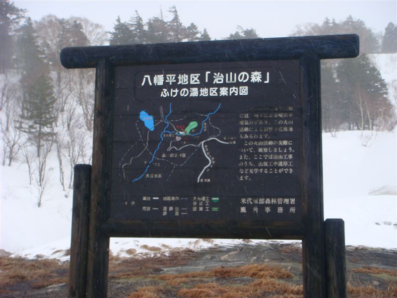 蒸ノ湯(ふけのゆ)地区遊歩道案内があったが大谷地や地熱発電所へのルートが目印もトレースもなく全くわからない。