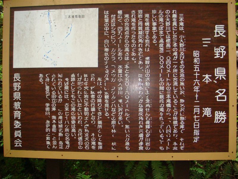 DSC00291.JPG乗鞍高原から自家用車でいけるのは三本滝レストハウスの駐車場までである。駐車場から歩いて約1km(20分)で三本滝までいける。日本100名瀑の1つだそうだ。三本の滝が1っ箇所に合流しているのが特徴とあった。3つの滝ともに50~80mあり見ごたえがある。マイナスイオンもとっても多い感じで気持ちがいい。3本の滝を同時に撮影できないので一番大きな写真を掲載しました。