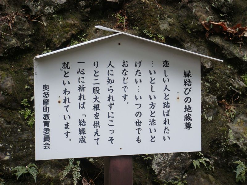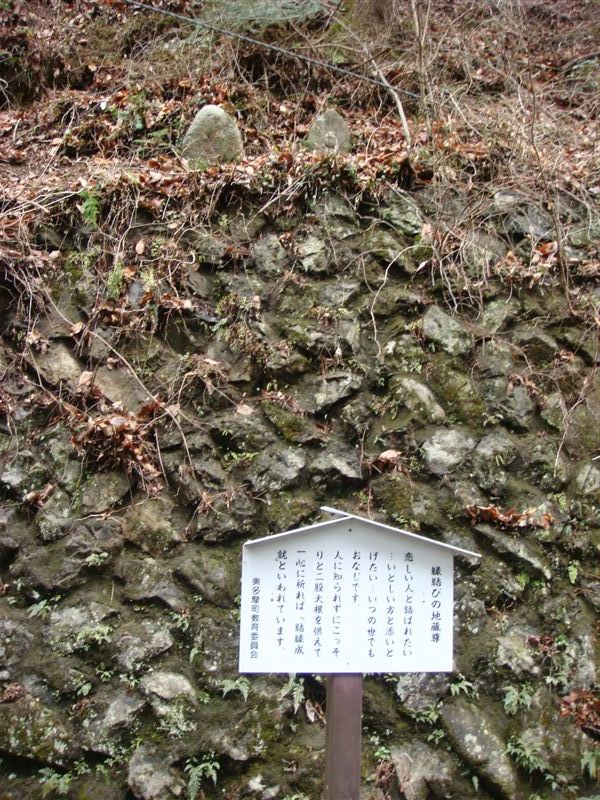 馬の水のみ場からさらに進むと縁結びの地蔵尊がある。このお地蔵さんも石垣の上にあるのが小さいので良く見ないと見落としそうだ
