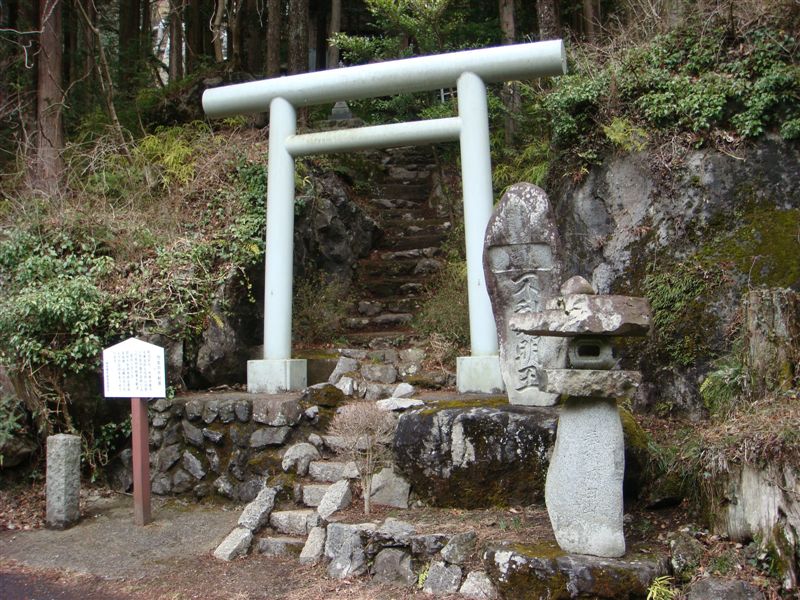鳥居が見えてきました。惣岳の不動尊です。祠に人影があったので登っていきました。今日3月1日は年に一度の祭りごとの日だそうです。お供えをして神事を執り行っていました。