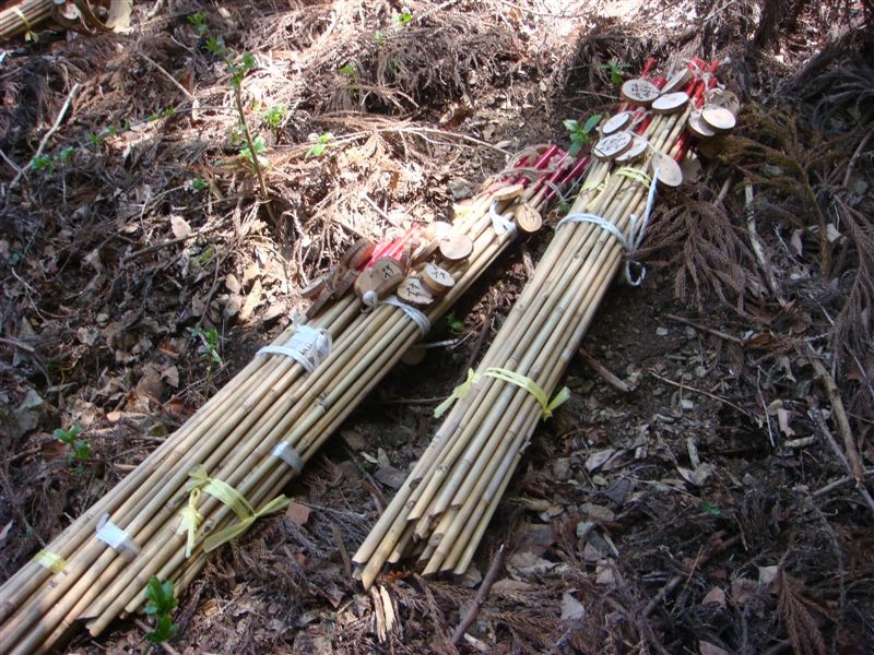 植樹する場所と木の名前の入ったポールを準備してあります。