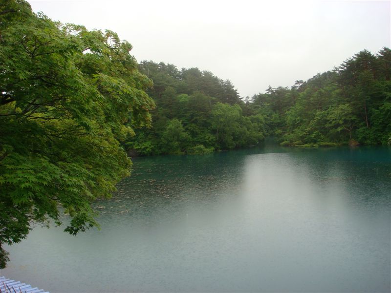 21日朝から雨が降っている。雄国沼はマイカー規制で金沢峠には車で入れない。そこで五色沼でハイキングをする予定であったが雨はやまず、毘沙門沼だけ見て会津の蔵元に向かうことにした。磐梯山は見えません。ひっそりと静かな毘沙門沼でした。