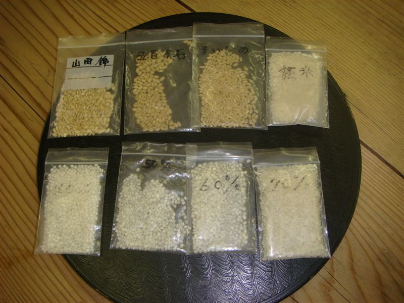 お米の種類、精米度合いなどの説明を受けて試飲開始である。