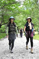 北アでもタイツにスカート姿の登山客が目立っているそうだ。朝日新聞にも載っていたがタイツにスカートを合わせた服装での登山を楽しむ女性が増えていると記事が出ていた。奥多摩でもよく見かける。タイツはひざや太ももの動きをサポートするというタイプもあり、おしゃれで、しかも脚の動きが楽で快適だと山友が言っていた。スポーツタイプのタイツだと動きやすく、脚が疲れにくい(特に膝に疲れがこない)と山友の男性も言っている。男もタイツに半ズボンで夏は快適だと山友は言っている。ただ、スポーツタイプのタイツはきついのでず~~とはいているのはつらいようだ。いつも山小屋に着くと先ずはタイツを脱いでやれやれと言うアンドの顔になる。足が疲れにくいようなので私もそろそろ購入検討しようかとも思っている。