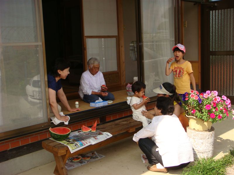 写真の光景は住まいからして「スイカがっぷり」の雰囲気、いい写真ですね!