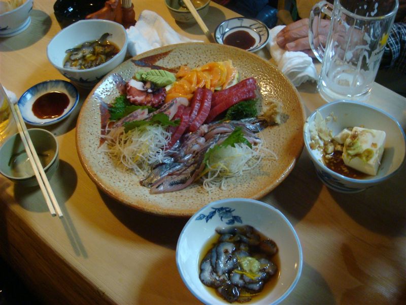 らお酒の飲めるお店を聞き出して忘年会の始まりです。先ずはビールで乾杯!お刺身の盛り合わせがおいしかってですよ。今年の思い出と、来年の計画を話しながら18:30ころ解散し帰途に着きました。甘く見ていた三浦アルプスですが今回のコースはとても楽しめました。