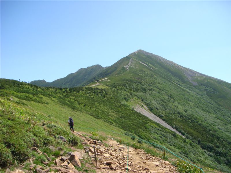 DSC00373.JPG爺が岳山頂です。じじいが・・・山頂でいと行き着きました。先はまだ長いのですが快晴で眺望も良く1時間も山頂で北アルプスの山々を眺めていました。苦労しないとこの景色は見られませんね。写真は2008/8/25撮影
