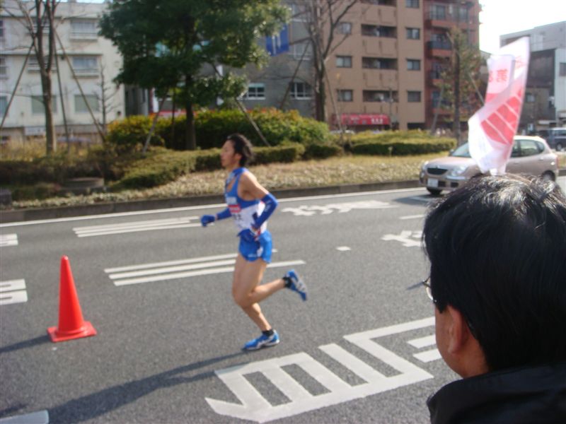 川崎駅から国道に向かい先頭ランナーに間に合った。スピードランナーが多く写真に撮るのは難しいです。この区間は最終10区です。
