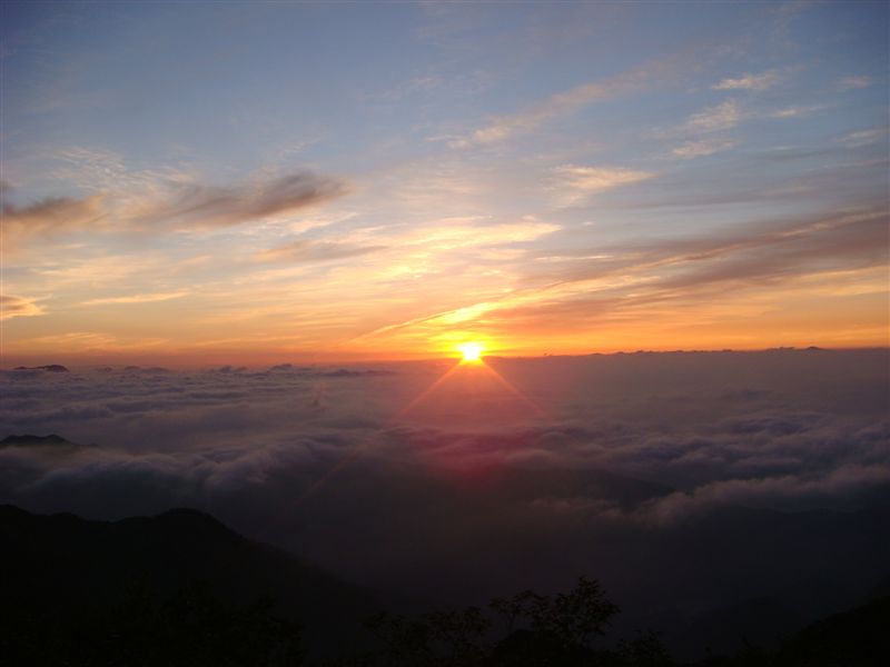 DSC00393.JPG冷池小屋でのご来光です。今日も快晴で朝は寒いです。朝食をとって日の出をみて5:30小屋を出発。1.5時間弱で鹿島槍山頂に到着し朝日に輝く北アルプスの山々を眺め疲れが吹き飛んでしまいます。2007/8/26撮影