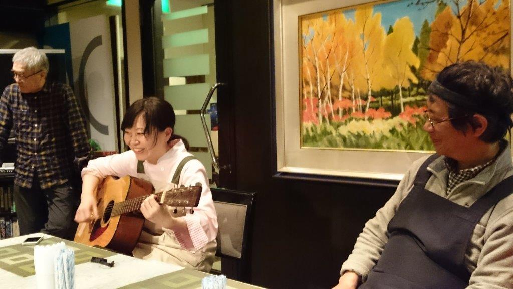 夕食は美味しかったですよ。お酒もたくさん飲みましたが今回は割愛です。宿のご主人と娘さんがミニコンサートをしてくれました。シンガーソングライターです。