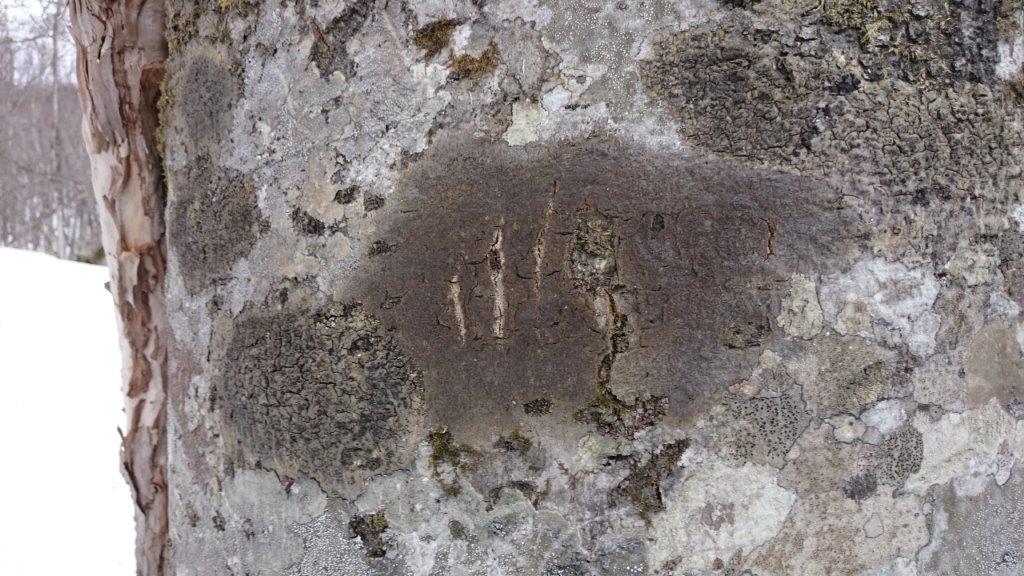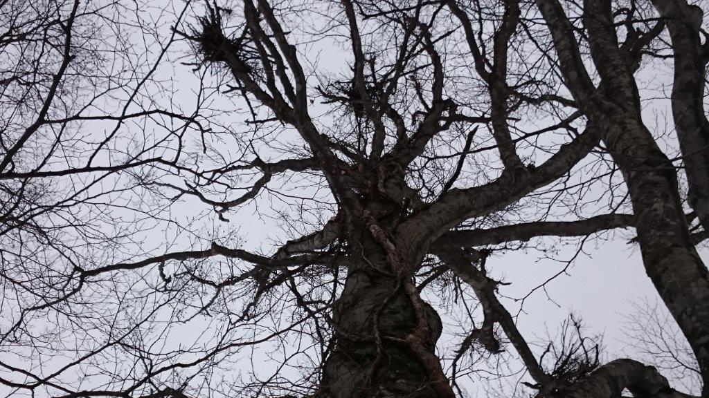 爪跡が!!!!くまです。熊棚がたくさん出来てました。昨秋はブナの実が豊作でくまさんはたくさん食べて冬眠したそうです。それにしてもすごいですね。