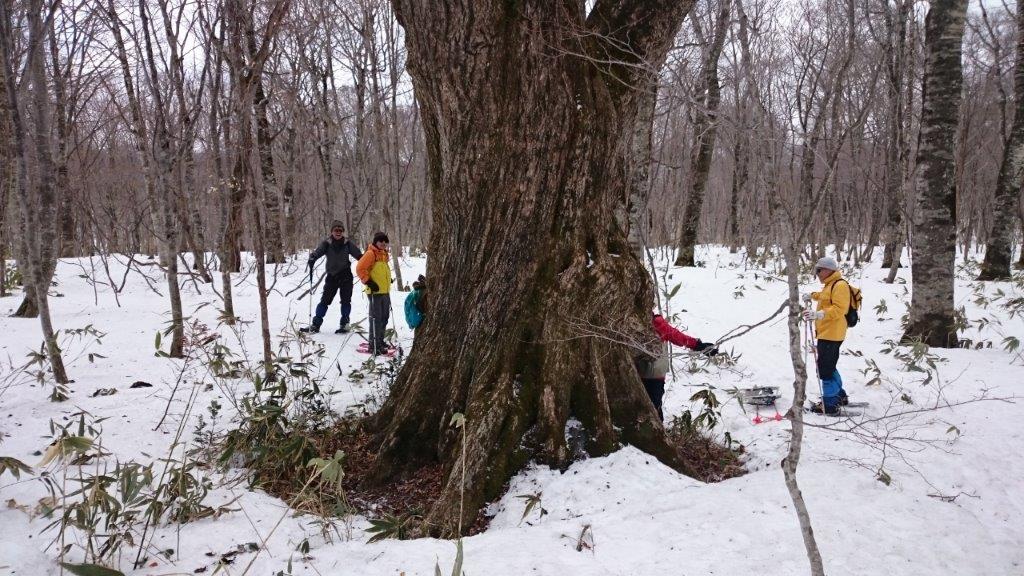 宿のそばにはミズナラの大木があります。幹の太さは10人が輪になってやっと届く太さです。見事ですよ!