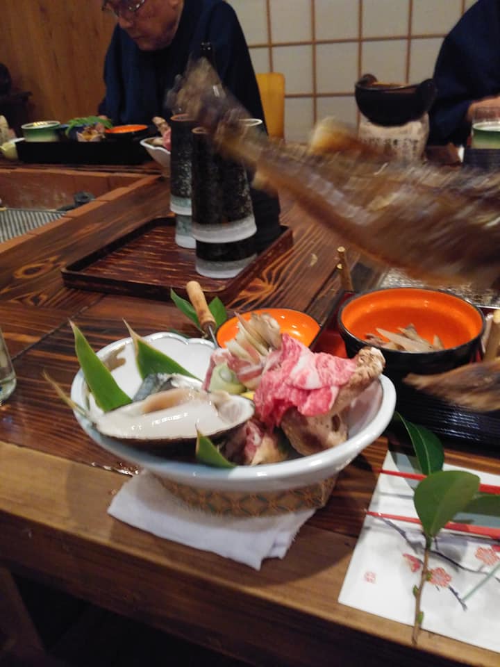夕食、朝食とも豪華で囲炉裏端での食事はとってもおいしかったですよ。