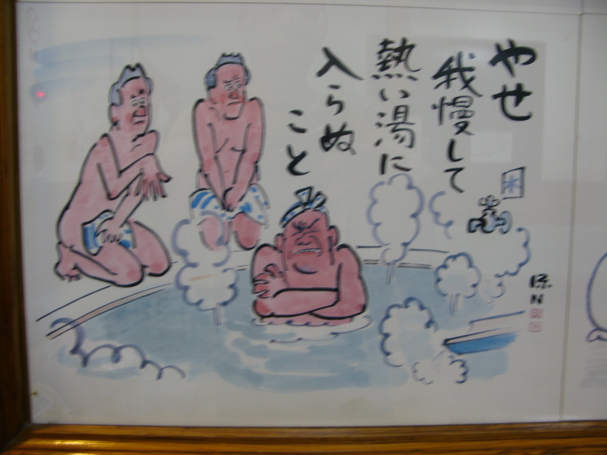 準備が終わったら温泉にゆっくり入ります。飲んで入ってはいけませんよ。