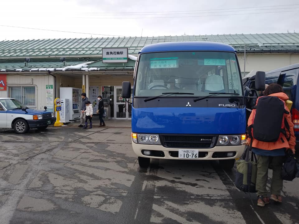鹿角花輪駅で後生掛温泉のシャトルバスにピックアップしてもらいます。