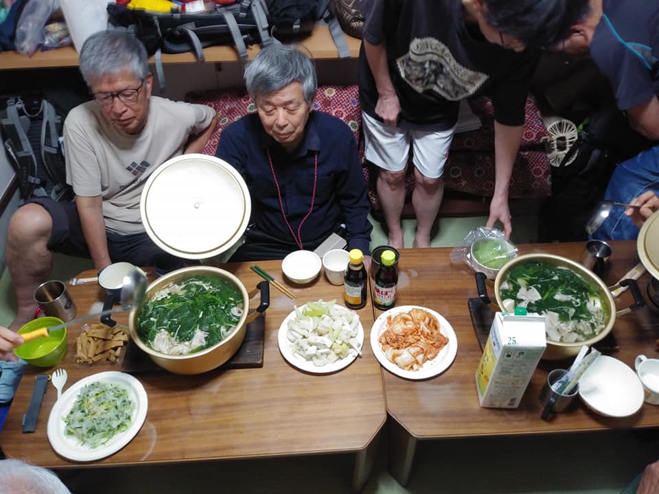おいしい鍋が出来上がりました。たくさん食べ、たくさん飲んでスノーシューを楽しみましょう。