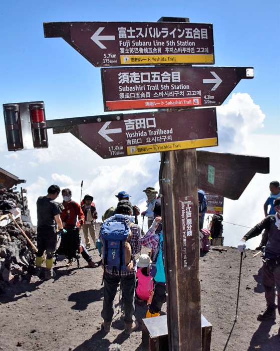 富士山下山道の吉田口と須走口の分岐点の8合目で登山者の道間違えが増えているが、静岡県は新たな対策として分岐点周辺に案内看板を5カ所に増設し新たな防止策を実施するようだ。