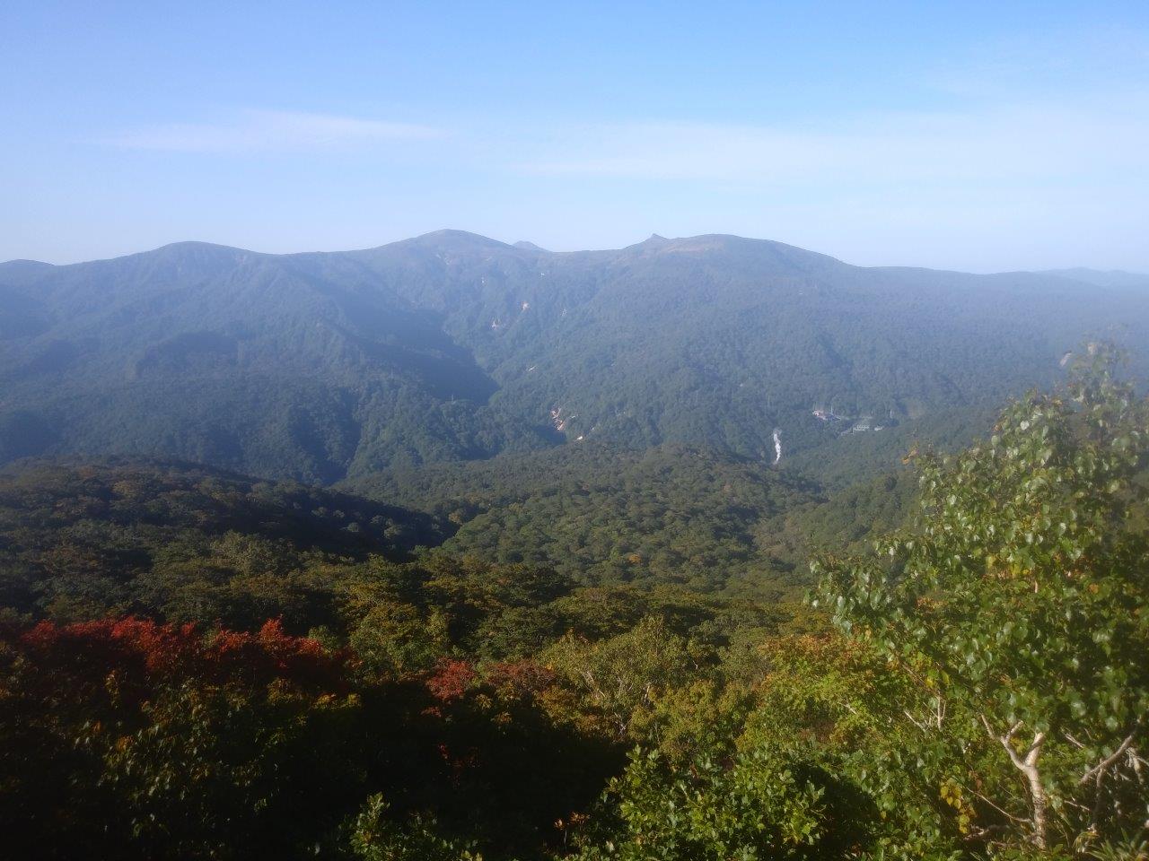 下山途中では遠くに真っ赤に燃える山頂の山がありましたが、焼石岳のようです。