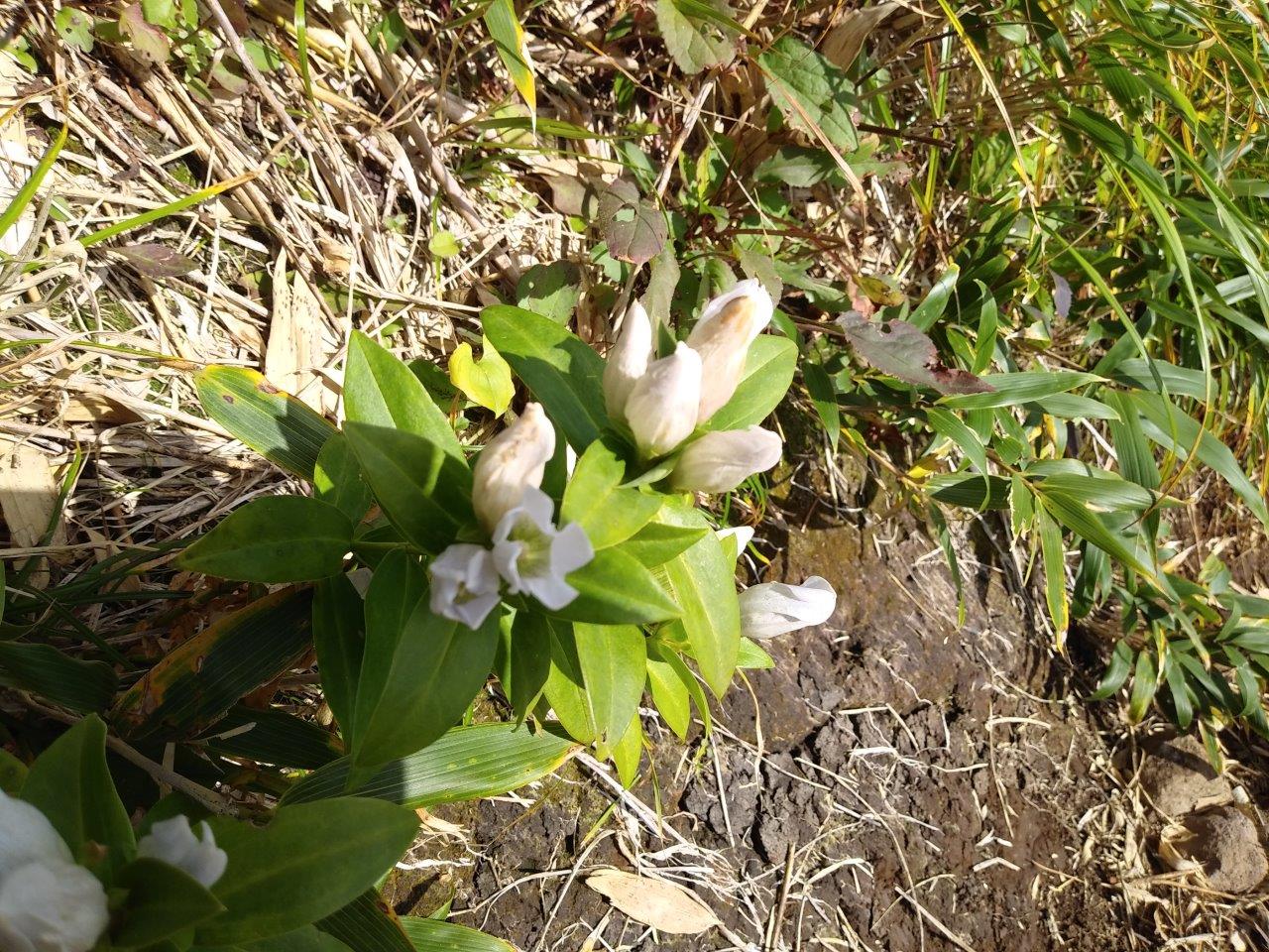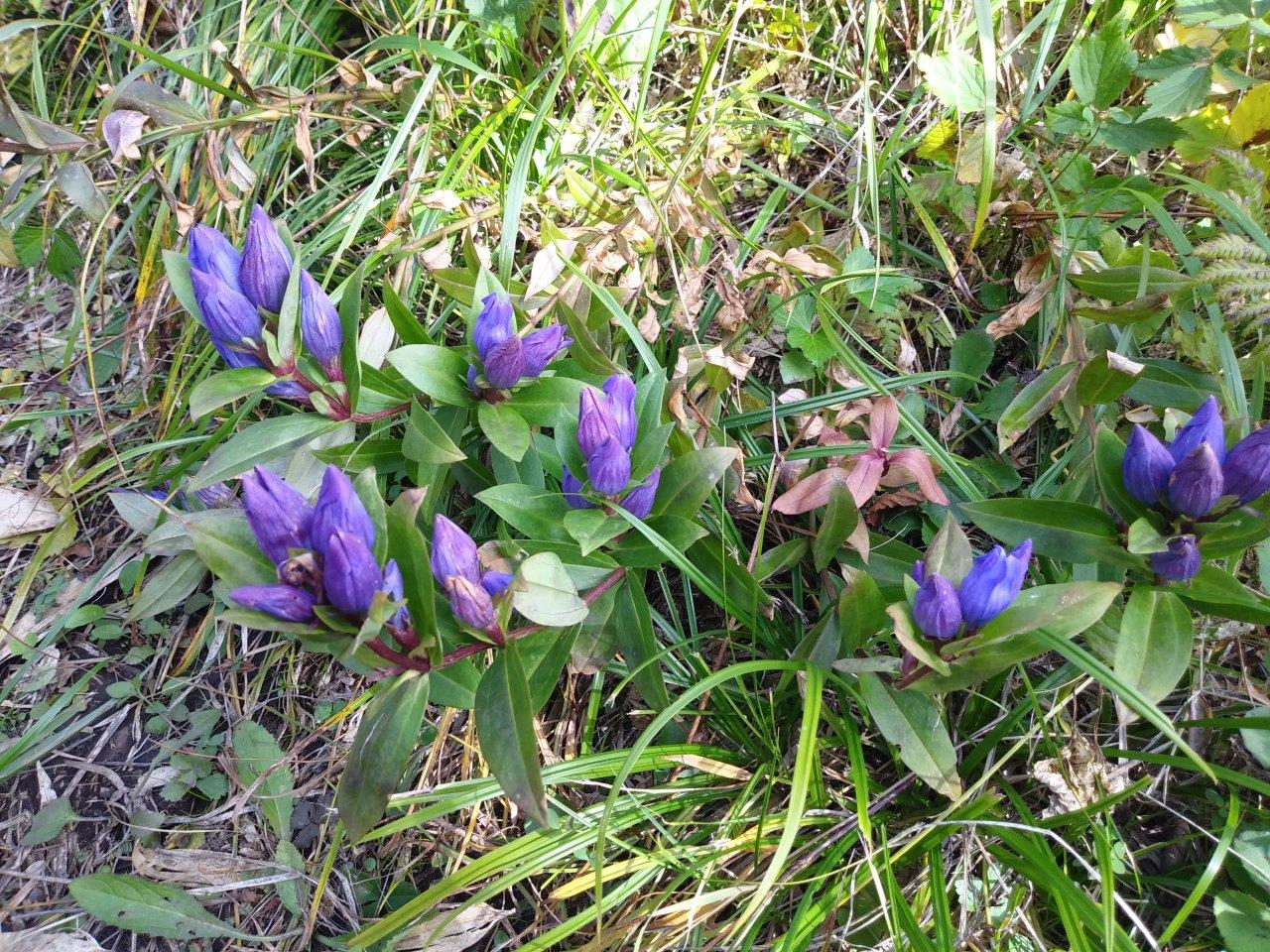 ここからは展望もよく、紫のリンドウや珍しい白のリンドウが咲いていました。