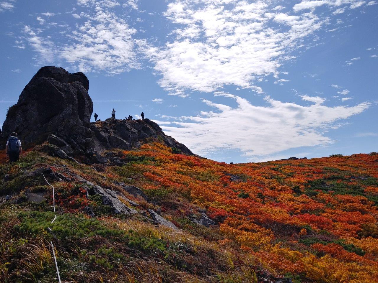 本州で一番早く紅葉する東北の紅葉真っ盛りの三ツ石山に登ってきました。