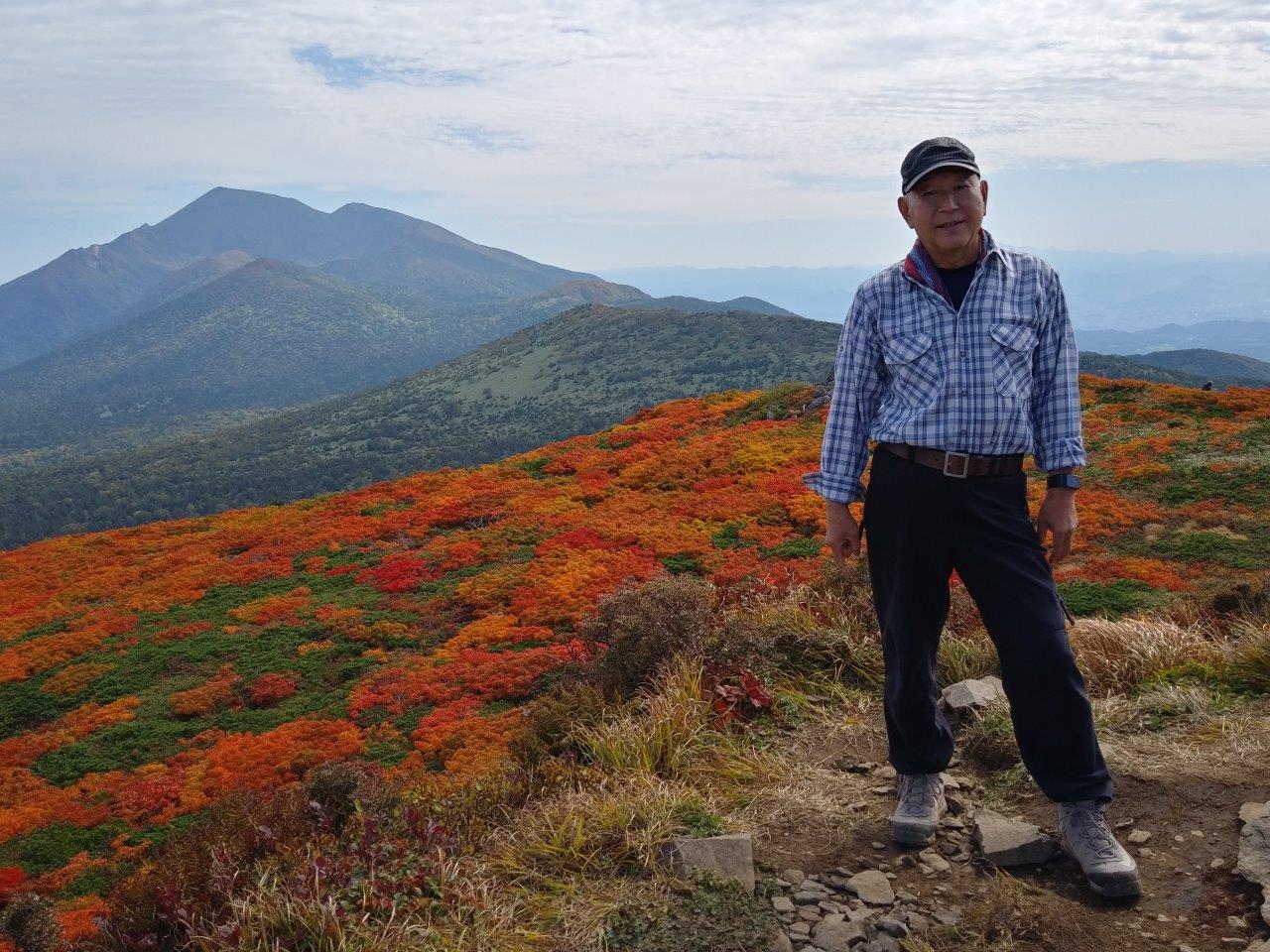 そして山を車で登っていくと栗駒山が見えてきました。山頂近くは黄葉しているようです。登山道入り口近くの宿に投宿し温泉に入って汗を流して展望室を紹介されたので夕焼けを見に行きました。鳥海山も遠望でき綺麗な夕焼けで天気も良くなると確信しました。