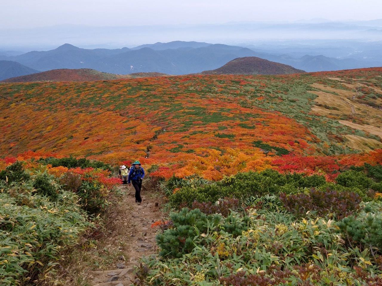標高1466mで、山頂付近がどの方向からも3つの峰に見えることから「三ツ石山」の名がついたといわれる山です。山頂一帯に広がる紅葉の海原!ナナカマド、ミネカエデ、ミネザクラの紅葉、近くに岩手山、遠くに秋田駒ケ岳、乳頭山などを臨み、大絶景が広がっています!