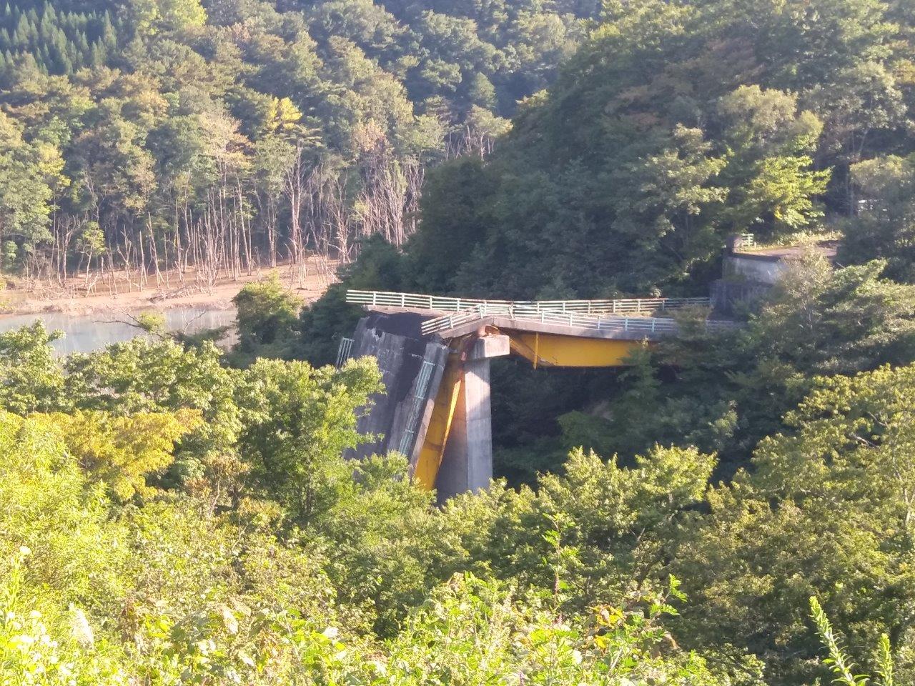 三ツ石山を下山して次の紅葉の山栗駒山に向かいました。途中2008年6月14日に発生した岩手・宮城内陸地震で崩壊した祭畤大橋を見てきました。地震は怖いですね。