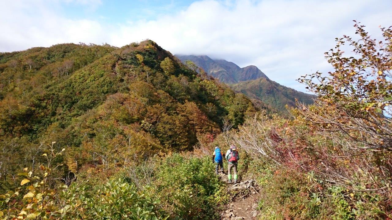 振り返れば駒ケ岳がもうあんなに遠くになってしまいました。明神峠あたりもだいぶ紅葉が進んできてますね。そして13:00過ぎに枝折峠に無事下山しました。