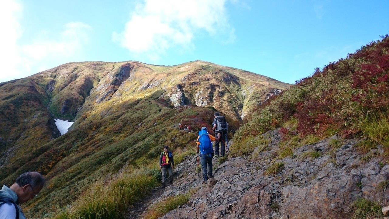 そして前駒です。ここからもう駒の小屋が見えますがここからは急峻な岩場が続きますので慎重に登っていきます。のんびり歩いてきたので小屋には13:00ころ到着し、寝床の場所を確保して荷物をデポして越後駒ケ岳山頂へ向かいました。