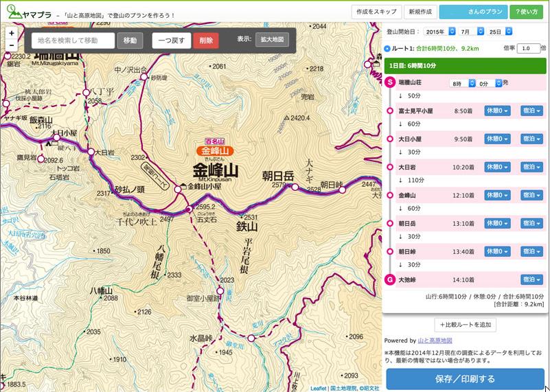いつも私が利用している登山地図シリーズ「山と高原地図」で登山の計画を簡単に行えるプランニング機能「ヤマプラ」が2015 年7月29日より「ヤマレコ」内にてサービスを開始されている。