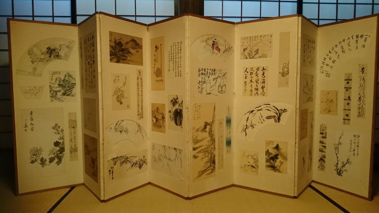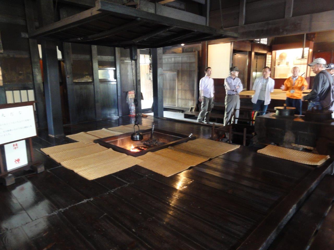 坂田家住宅の中心となる主屋は江戸時代末期の建築であり、昭和28年に改築されていますが、奥座敷や茶の間などに近世農家のそのままだそうです。ここの広間で一泊しましたが立派な屏風は別の部屋に運んで破らないようにしました。このほかにも古伊万里など貴重なものが展示されていました。日本刀も鞘から出して握ってみました。