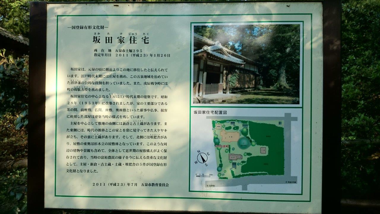 坂田家は、江戸時代には庄屋、明治時代には中蒲原郡の戸長を務めた旧家でとても立派な屋敷です。大きなケヤキが3~4本ありました。