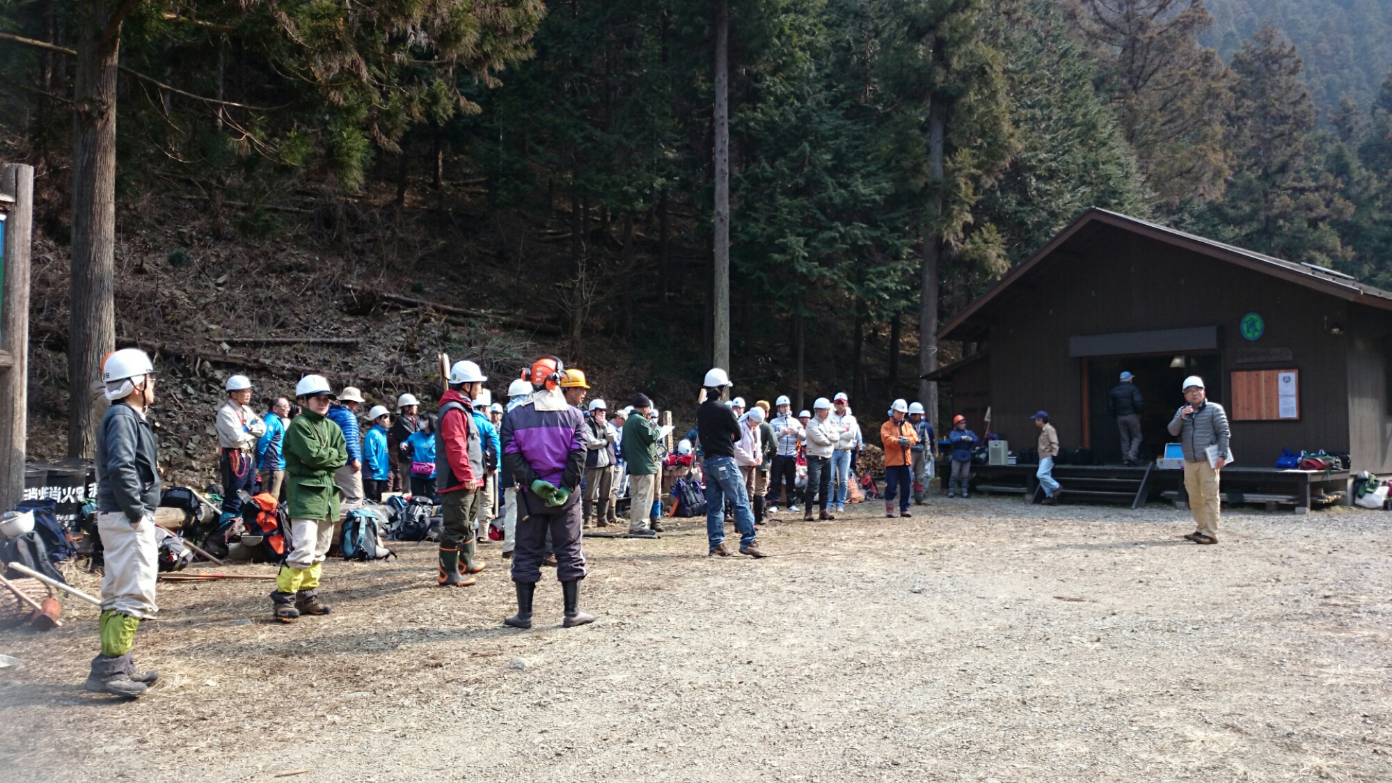 3月14日は高尾の森づくりの会の山仕事でした。いつものように作業前のミーティングです。