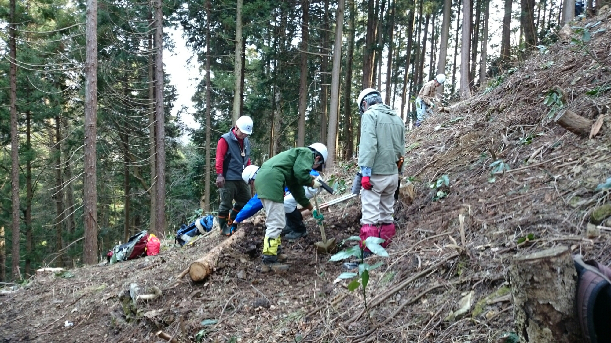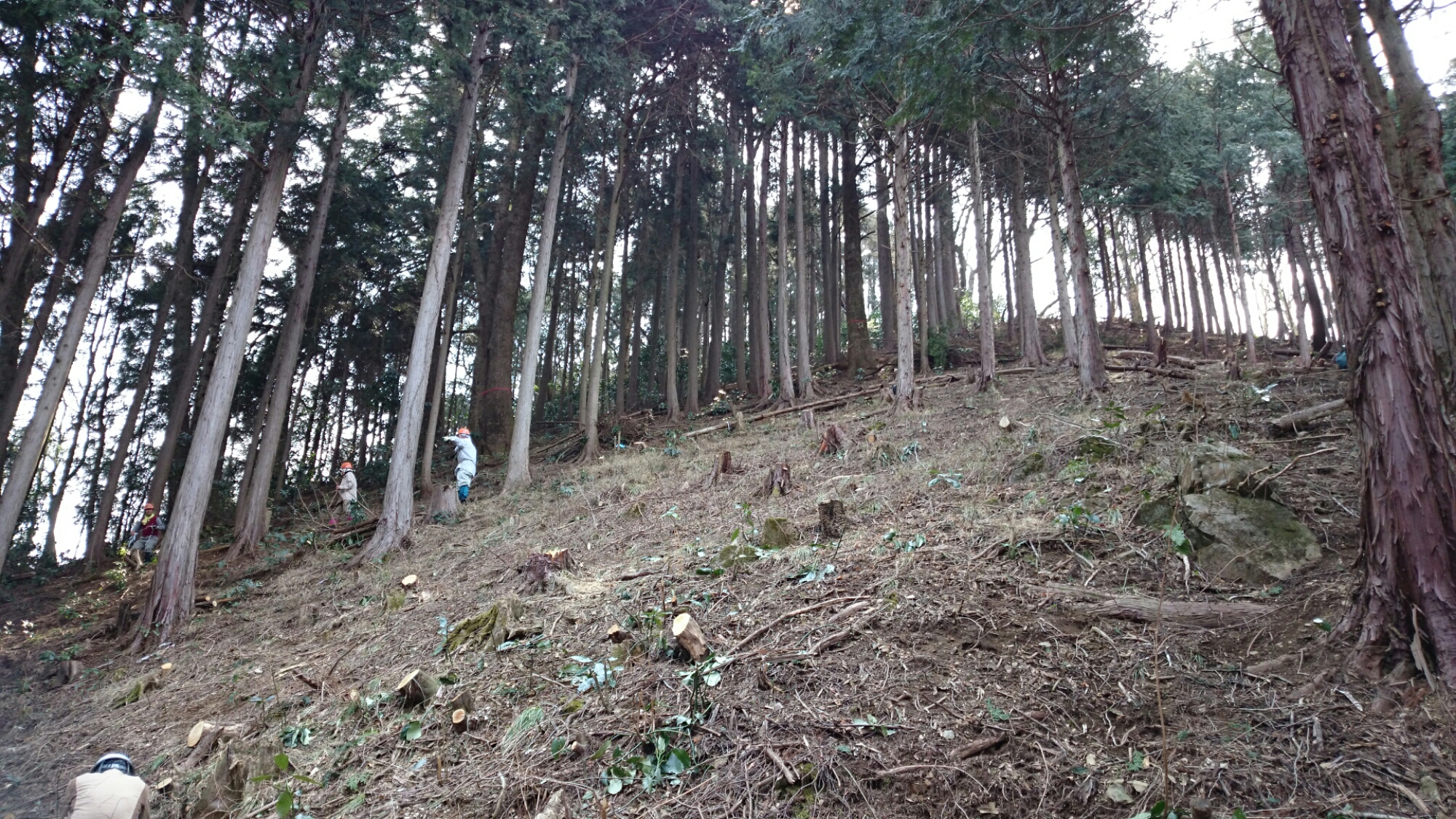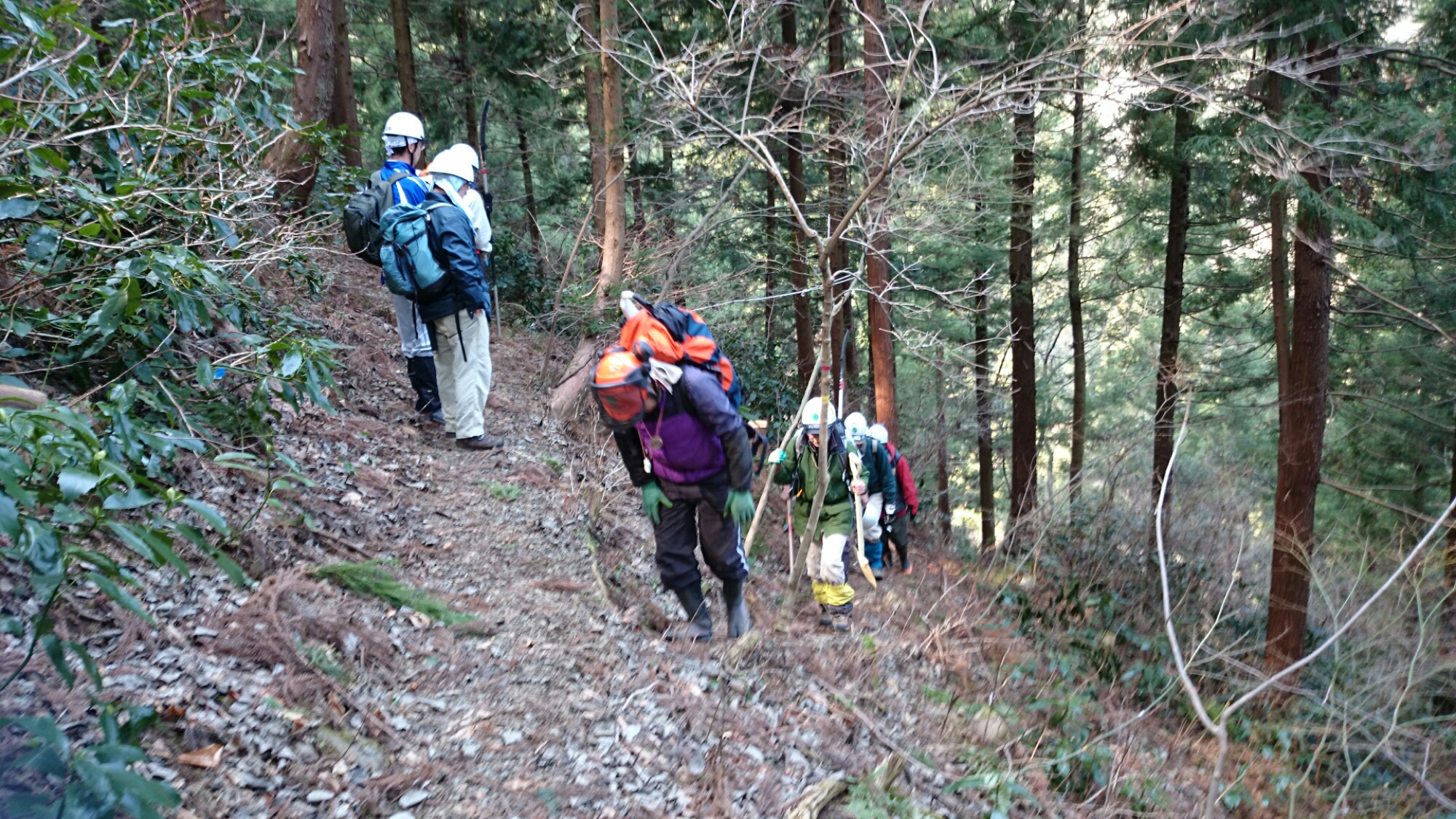 そのあと四班に分かれて各作業地へと向かいます。登山道ではなく自分達で作った作業道なのできつい坂です。