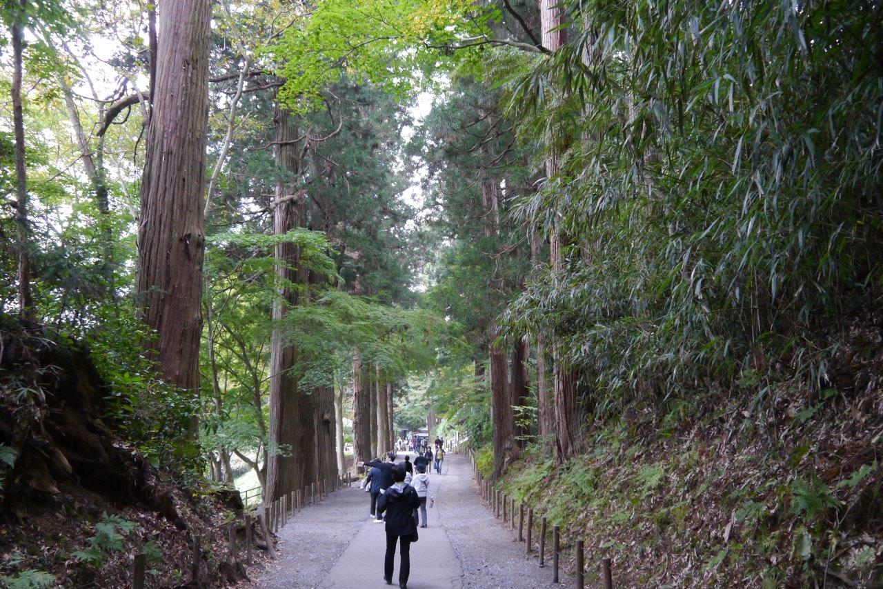 見返り坂を下りて中尊寺の入り口に出ました。森の中の境内は心が洗われますね。