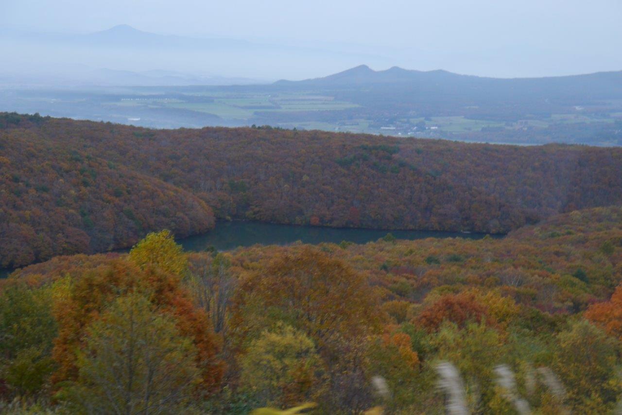 山頂ではもう紅葉は終わっていますが岩手山や後生掛温泉方面は紅葉で見事ですがあいにくの天気でぼやけてしまって残念でした。