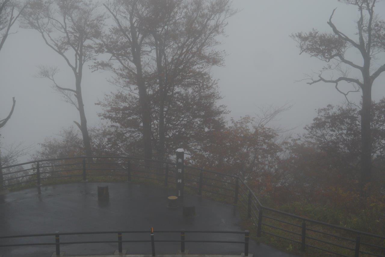 小休止の後、酸ヶ湯温泉を横に見て通過し城ヶ倉大橋に来ました。雨で視界が悪くあきらめていたのですが。