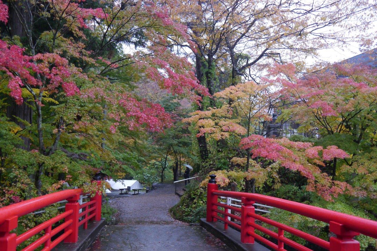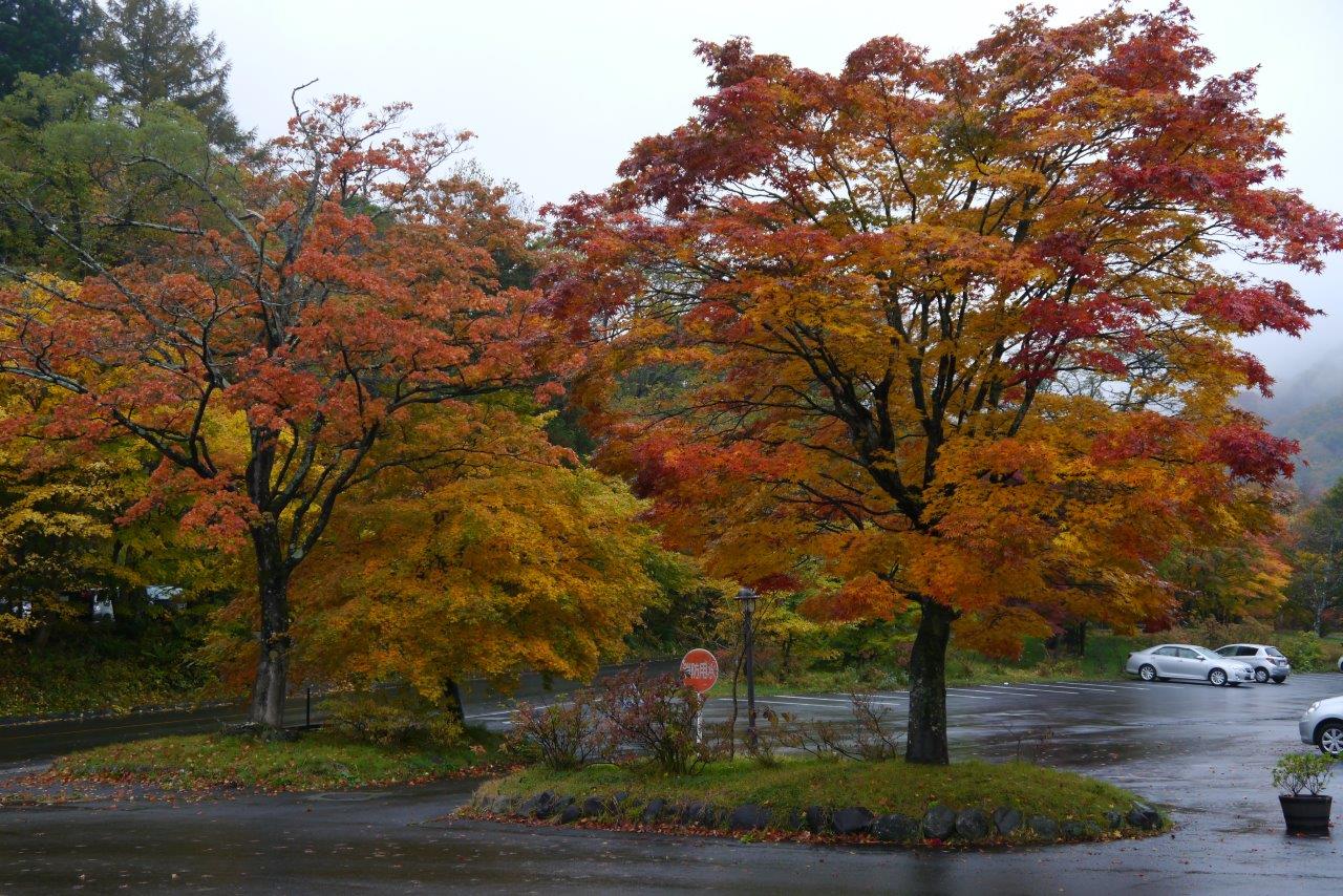 中腹あたりまでは紅葉真っ盛りで紅葉のトンネルをバスで抜けていきました。