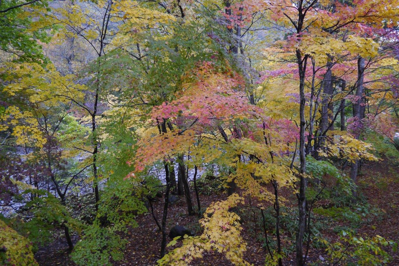 そしてバスは八幡平の中の高速道路を走り、最後の紅葉を車上から楽しみ、盛岡江と向かいました。あまり天候がすぐれない中の2日間でしたが、見事な紅葉が堪能できて満足な1泊2日の東北紅葉旅行でした。